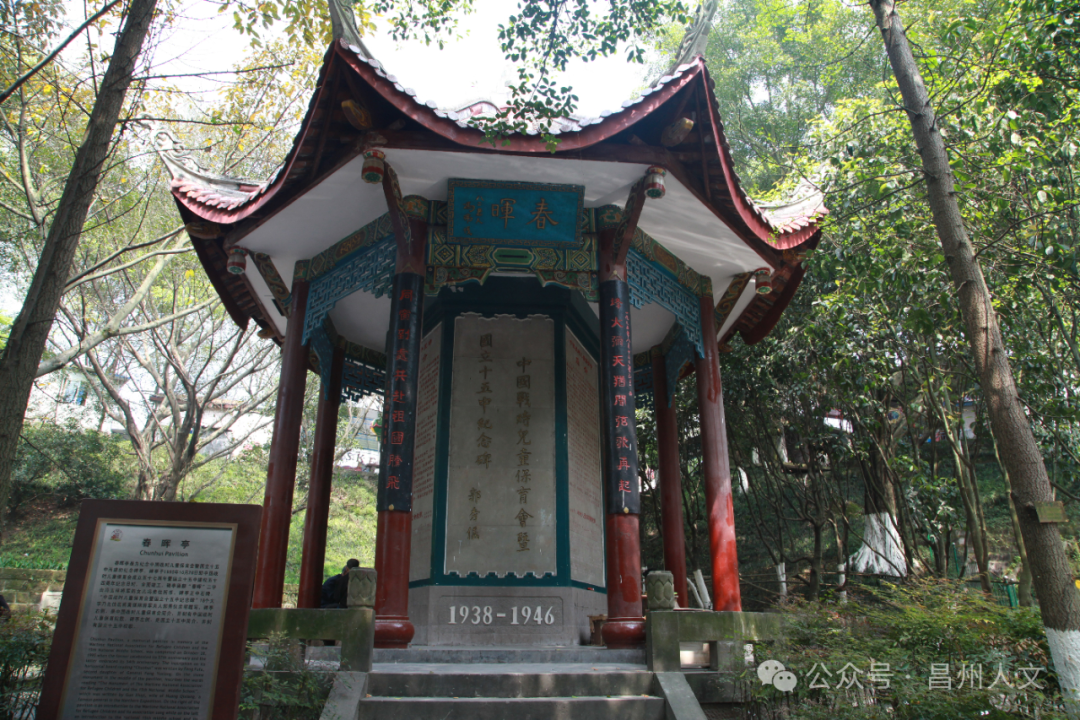 (位于荣昌区海棠公园内的中国战时儿童保育会暨国立十五中纪念碑亭 区委史志研究室供图)