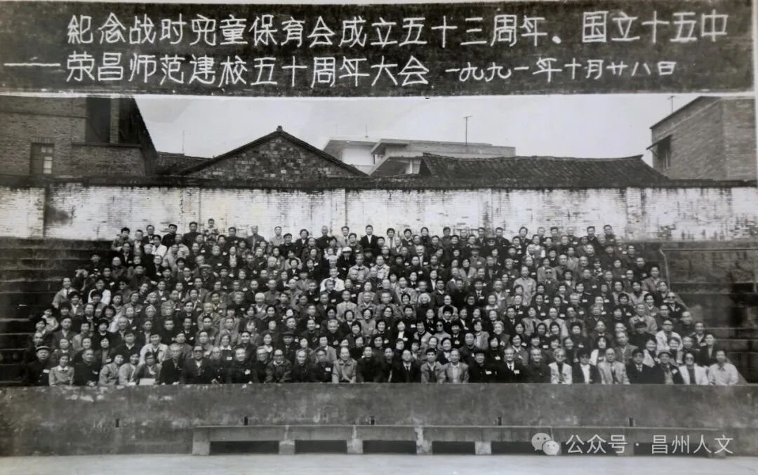 (1991年10月28日纪念战时儿童保育会成立53周年、国立十五中——荣昌师范建校50周年大会 区委史志研究室供图)